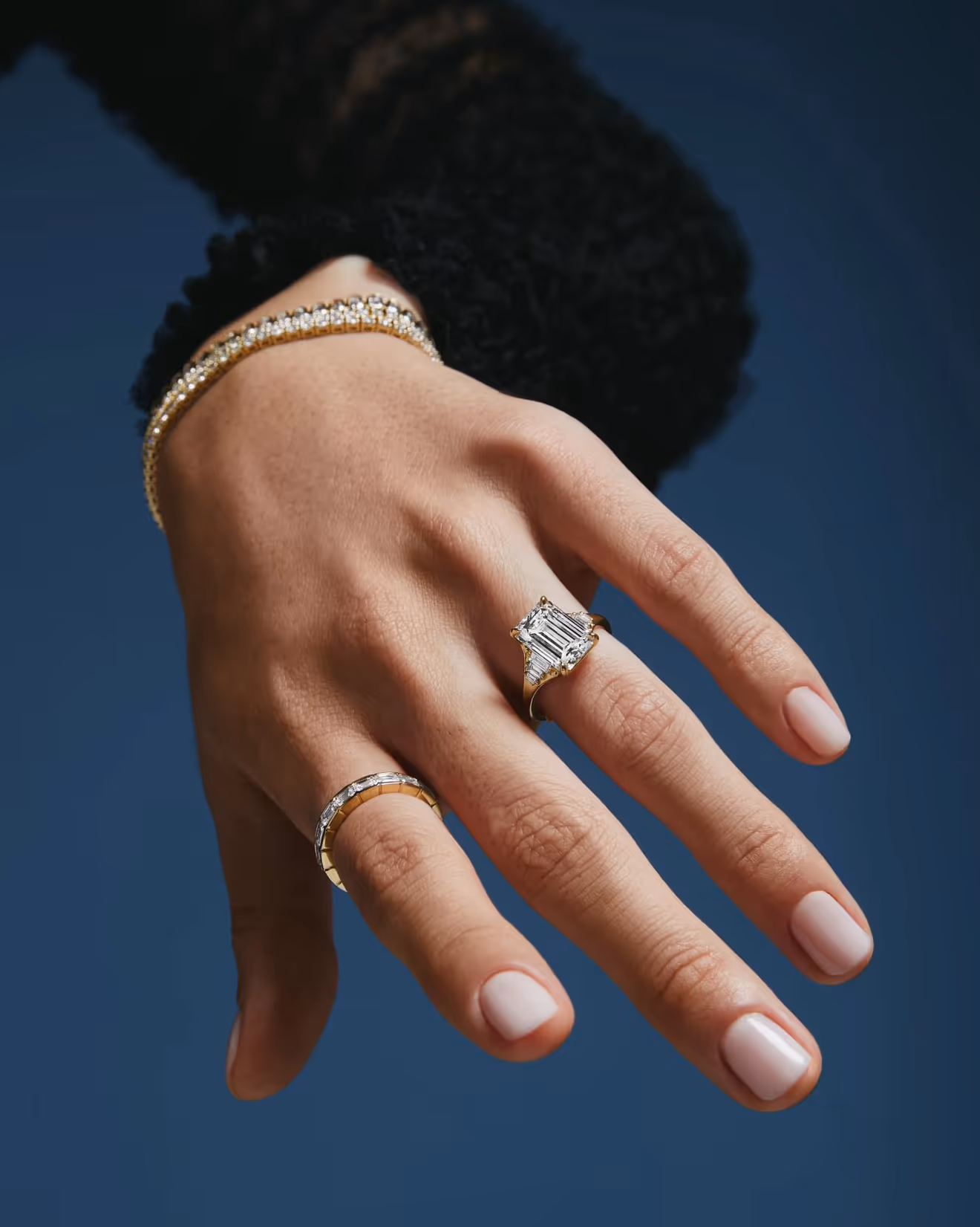The ultimate statement piece. Endless diamonds, a scalloped side profile that maximizes light, while the low-profile design keeps things super comfortable. Starting from $4510.